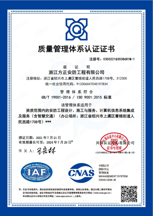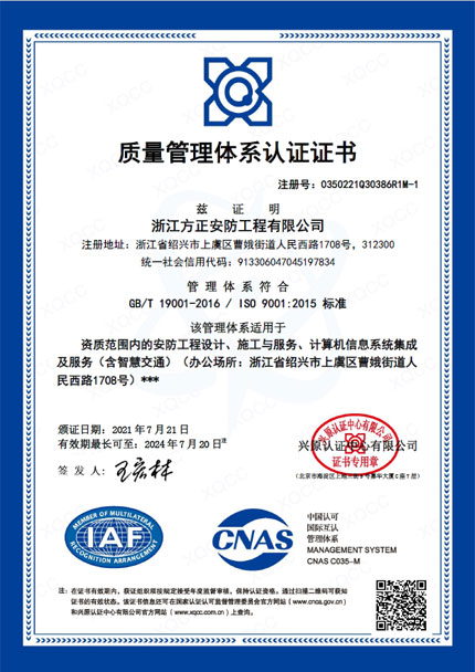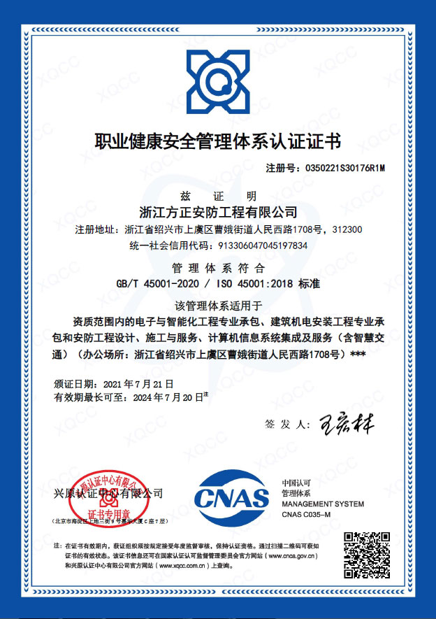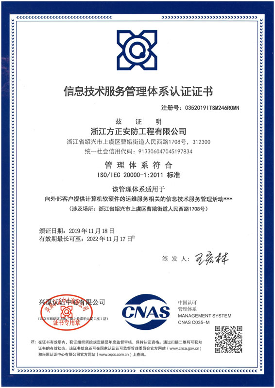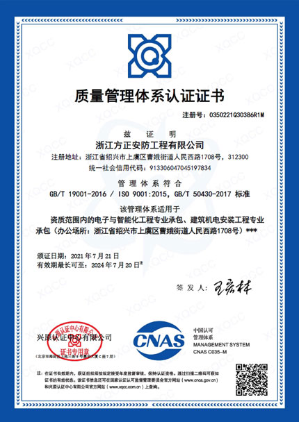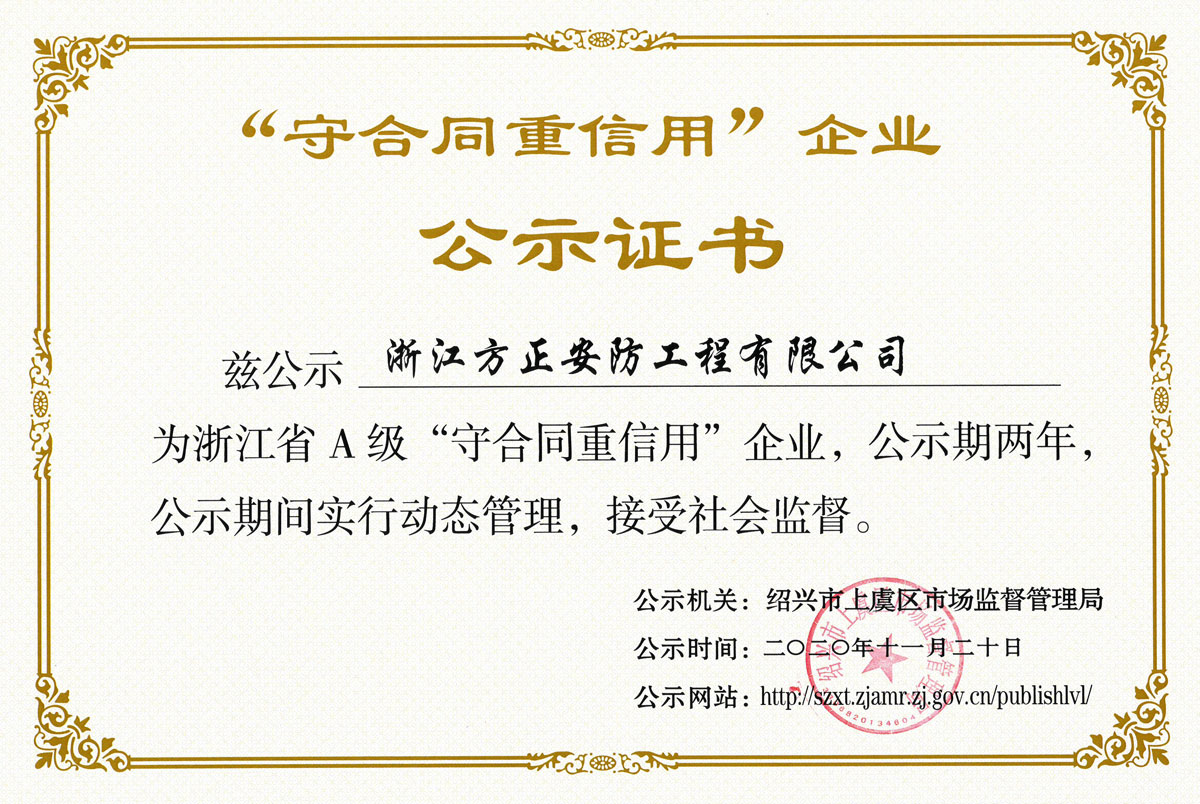 已取得浙江省公安廳頒發的《浙江省安全技術防范行業資信等級壹級證書》、浙江省住房和城鄉建設廳頒發的《電子與智能化工程專業承包貳級》、《安全生產許可證》、《建筑機電安裝工程專業承包叁級》、《城市及道路照明工程專業承包叁級》